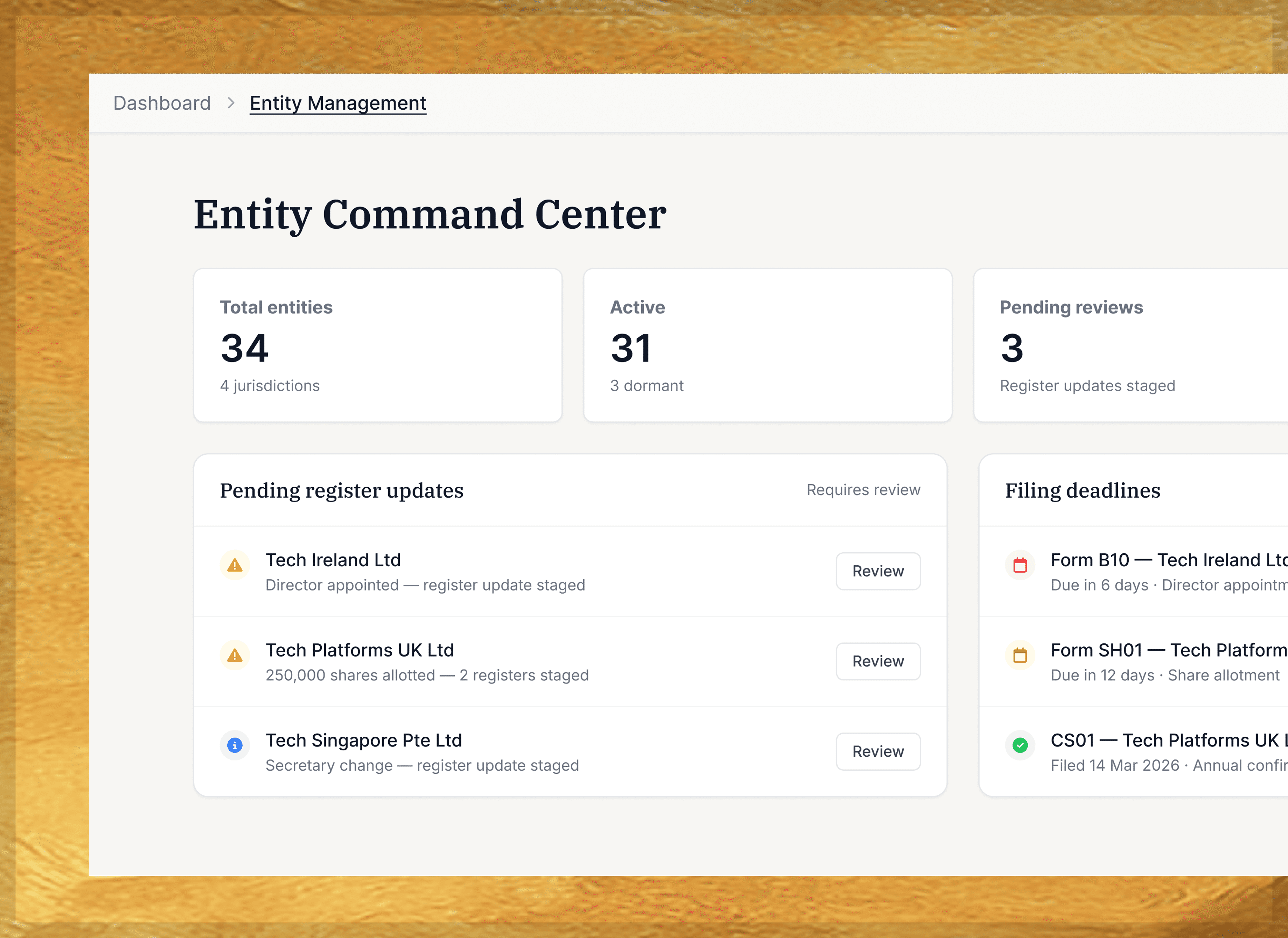 Trusted by leading companies, built by lawyers for legal and CoSec teams.